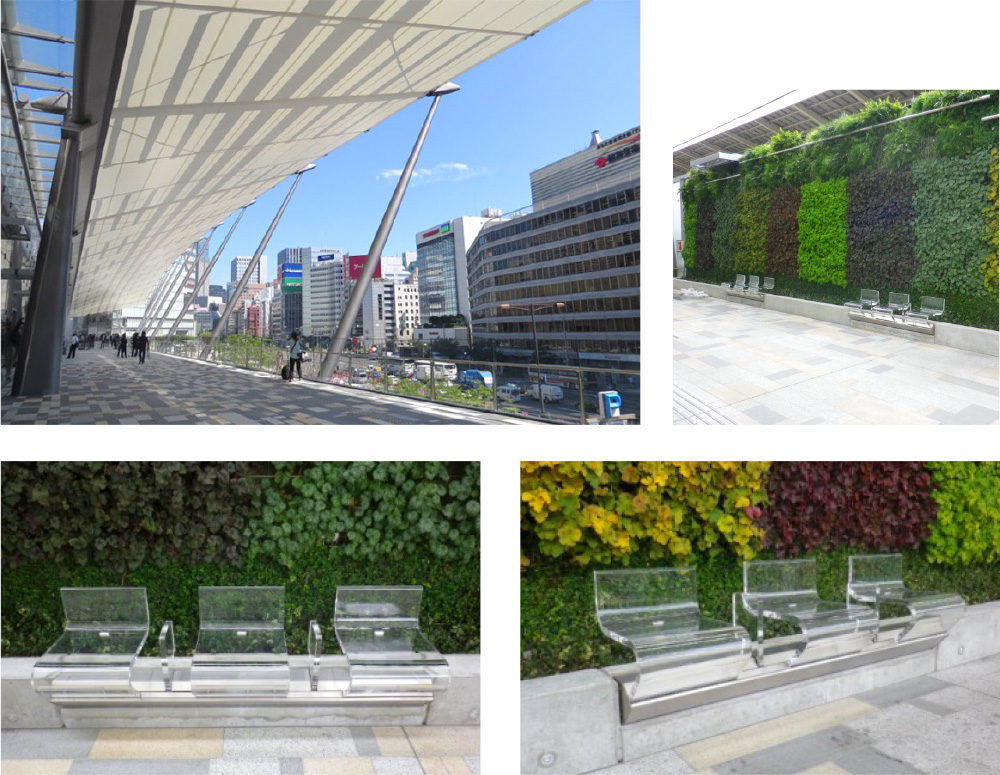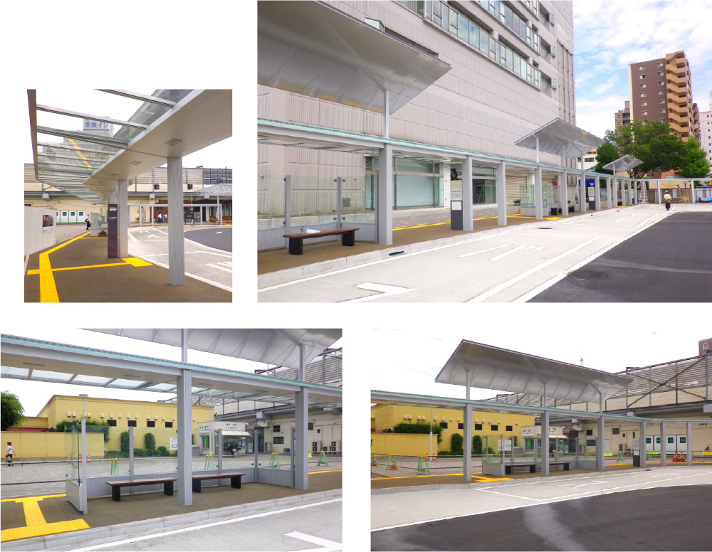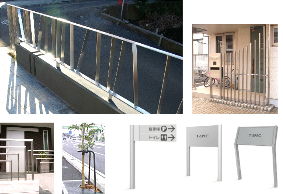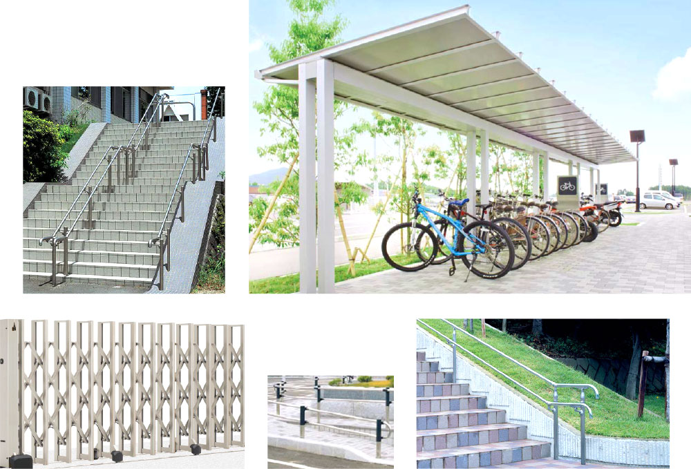 バス停、駐輪場、歩行者用手すりなど、さまざまな公共スペースの製品で、